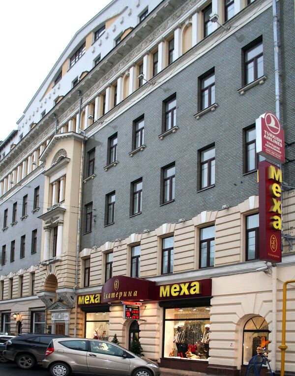 На углу с Кузнецким Мостом — торец городской усадьбы Мясоедовых, архитектурный облик которой сформировался в середине XVIII — начале XIX веков. В 1829 году главный дом усадьбы был продан под размещение театрального училища, позднее здесь разместилась Московская контора императорских театров.