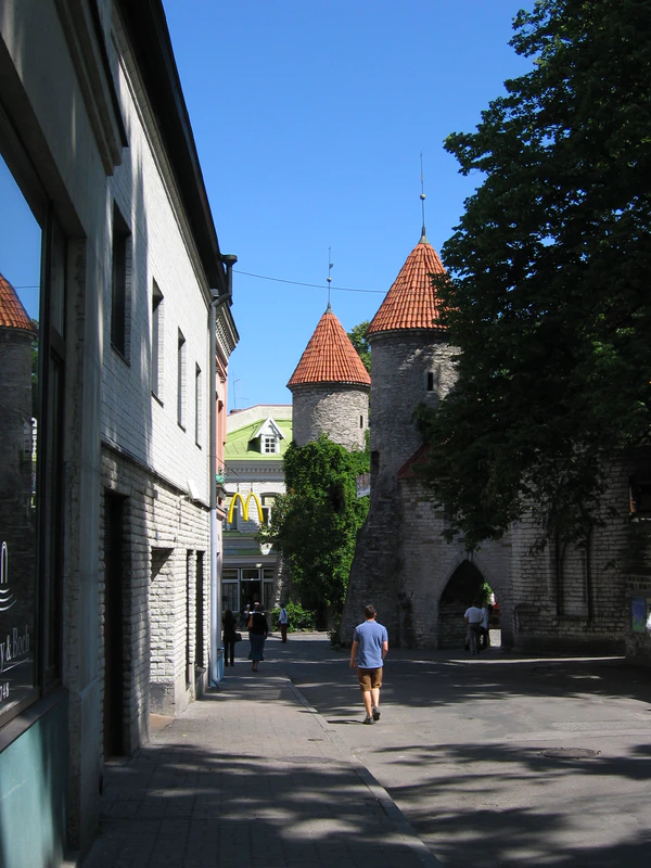 На улицу выходит часть крепостной стены Таллина с башней Хинке[3].