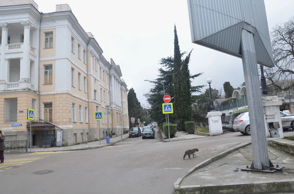 Автомобильное движение на улице одностороннее — с запада на восток (из города к морю).