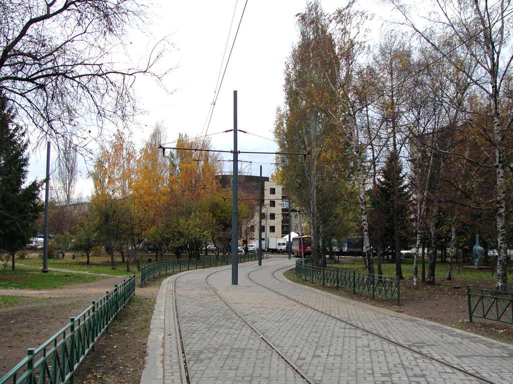 От пересечения с проспектом Хусаина Ямашева на север (в сторону КАПО им С. П. Горбунова) также были пущены трамваи маршрута № 13 (с 1979 года), а на юг в сторону железнодорожного вокзала действовали трамваи маршрута № 14 (1980—2009 годы), встречных кольцевых маршрутов № 20 и № 21 (1999—2008 годы, до ликвидации трамвайной линии в центре Казани) и маршрута № 19 (2008—2009 годы)[49]. В настоящий момент, трамвайные рельсы на пересечении с проспектом Х. Ямашева, пущены под улицей Декабристов (под эстакадой) и проходят по улице Ленская до пересечения с улицей 2-я Юго-Западная, где соединяются с веткой, по которой уже ходит трамвай 9-го маршрута.