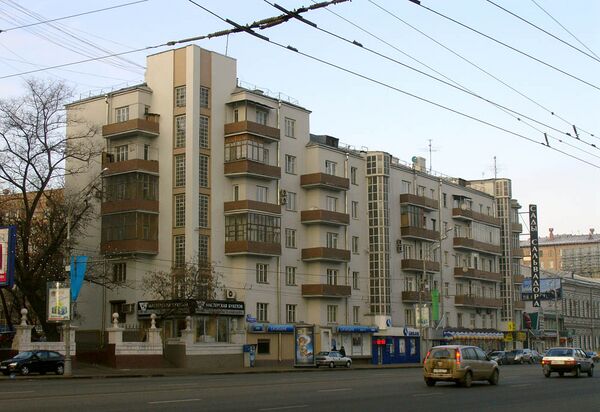 - № 14/16 — жилой дом (1934, архитектор А. А. Кеслер)[2][7]. Во время строительства жилой дом № 14/16 вместе со стоящими напротив домами № 21—23 обозначал пересечение Садового кольца с проектируемой новой Сталинской магистралью, которую планировали пробить сквозь застройку от Покровского бульвара[3]. В доме жили художник Константин Юон (в 1936—1958 годах; мемориальная доска, 1961, автор Е. Ф. Белашова)[22], лётчик Валерий Чкалов (в кв. № 102; мемориальная доска, 1955, скульптор Н. Е. Саркисов)[23], актёр Борис Чирков[24], биолог Иван Шмальгаузен[25], педиатр Г. Н. Сперанский[26], поэт и драматург Самуил Маршак (в кв. № 113; мемориальная доска, 1966, скульптор Ю. Л. Чернов, архитектор Ю. Е. Гальперин)[27], выдающийся скрипач, народный артист СССР Д. Ф. Ойстрах (в 1941—1974 годах; мемориальная доска); композитор, пианист С. С. Прокофьев (в 1936—1941 годах, мемориальная доска); герой Советского Союза генерал-лейтенант С. А. Данилин (в 1938—1976 годах; мемориальная доска); герой Советского Союза генерал-полковник Г. Ф. Байдуков (в 1937—1972 годах; мемориальная доска); герой Советского Союза генерал-лейтенант авиации А. В. Беляков (мемориальная доска); архитектор В. К. Олтаржевский[28], государственный деятель А. И. Ефремов[29]. В этом доме жили и работали художники Кукрыниксы (мемориальная доска). За этим домом, № 9 по Большому Казённому переулку — неоклассическая гимназия постройки (1912, архитектор И. И. Рерберг);