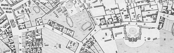 - 18, стр. 1 — Главный дом (архит. А. А. Менелас, 1799—1802 гг.) городской усадьбы графа А. К. Разумовского и флигели (1840-е годы, архитектор А. Г. Григорьев).