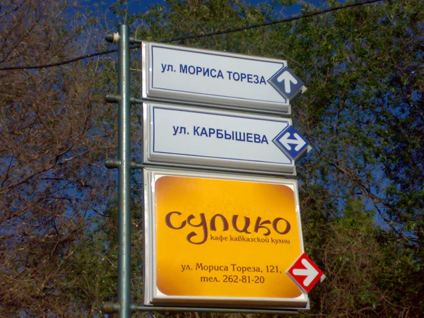- с улицей Мориса Тореза — №№ 18, 75, 89 маршрутное такси; №№ 11, 18, 75 автобусы;