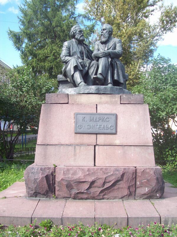 В начале улицы при выезде на проспект Карла Маркса находится памятник Карлу Марксу и Фридриху Энгельсу. Памятник был открыт 10 мая 1960 года, в год празднования 40-летия образования Карельской трудовой коммуны. Карл Маркс и Фридрих Энгельс запечатлены в момент беседы. Автор памятника — киевский скульптор Ефим Белостокский в соавторстве с украинскими скульпторами Элиусом Фридманом и Петром Осипенко. Скульптурная группа отлита из бронзы на Мытищинском заводе художественного литья, а пьедестал изготовлен из шокшинского малинового кварцита.[12]