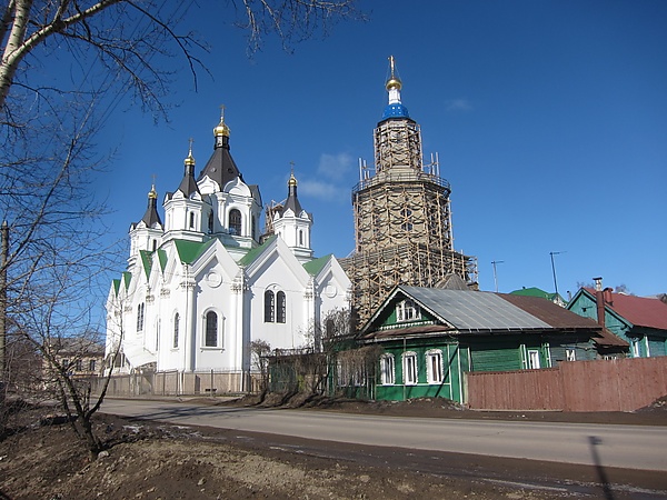 Тёплый храм Рождественского прихода, возведенный в 1850—1852 наследниками купца-откупщика А. М. Заяшникова. Выстроен вместо прежнего каменного здания. Восьмистолпный храм в русско-византийском стиле с пощипцовыми завершениями прясел фасадов, увенчанный пятью шатровыми куполами. Боковые приделы Благовещенский и Николая Чудотворца и прмч. Евдокии. Закрыт в 1940, передан под пекарню, купола сломаны. В 1990-х возвращён верующим, отреставрирован.