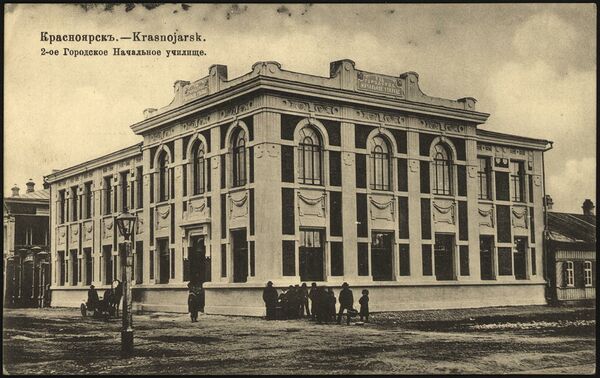 Здание красноярского уездного учидища. Построено в 1832 году. В 1836 году дом был куплен городским обществом для красноярского уездного училища. В 1851 году к зданию пристроили восточное крыло для приходского училища, в котором в 1856 — 1858 годах учился художник Василий Иванович Суриков. Затем он учился в уездном училище. Сейчас в здании находится детская художественная школа им. В. И. Сурикова.