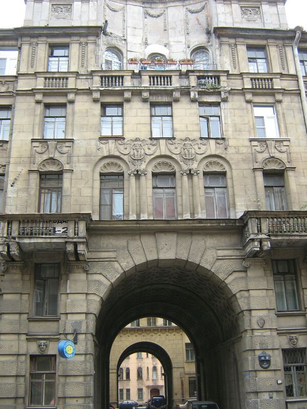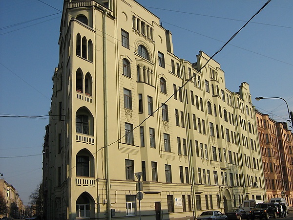 Дом № 6 / Пушкарский переулок — жилой дом «Цезарь», 2005 год, подражание архитектуре модерна, арх. А. В. Дюндин.