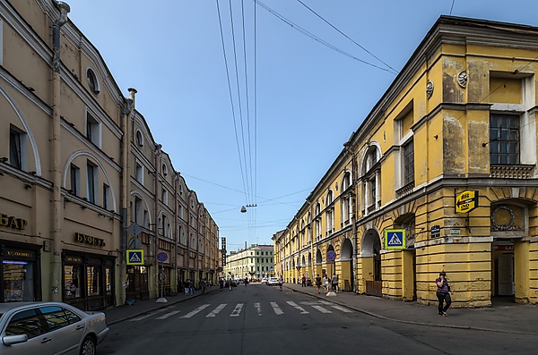 - д. 13 — здание Петербургского коммерческого училища, затем — Мариинской женской гимназии (арх. Плавов П. С., Пименов П. С., 1830, 1857—1858). В 1908—1915 годах здесь жил русский актёр К. А. Варламов.