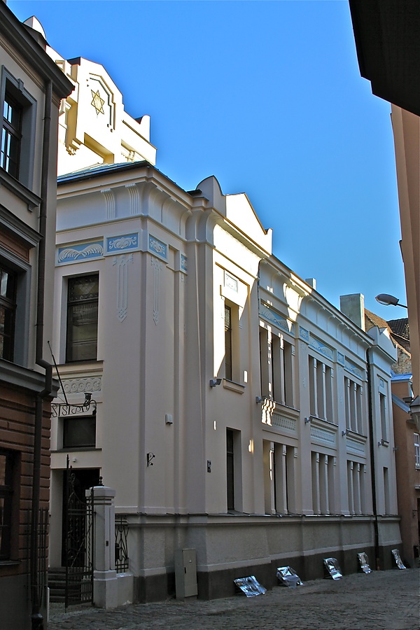 В конце XIX века в Старом городе образовалась еврейская религиозная община. Был приобретён участок земли для постройки синагоги, которую возвели в 1905 году по проекту архитекторов Вильгельма Неймана и Германа Зейберлиха[3]. Синагога не была разрушена в период немецкой оккупации Риги 1941—1944 годов и действовала в советское время (1940—1941, 1944—1991 годы).