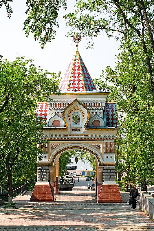 - Николаевские Триумфальные ворота (арка Цесаревича) (1891) — старейший монументальный памятник Владивостока. Построены к визиту цесаревича Николая Александровича, будущего императора Николая II. Снесены в 1930 году, восстановлены в 2003 году[1] (архитекторы В. К. Моор, В. А. Обертас, А. Г. Гаврилов, инженеры С. И. Доценко, А. А. Стоценко. А. П. Художники: О. Г. Калюжная, А. П. Онуфриенко, А. Г. Калюжный выполнили элементы декора сооружения, скульпторы — Н. М. Шайморданова, Е. К. Самбурский, Н. П. Монтач)[2]