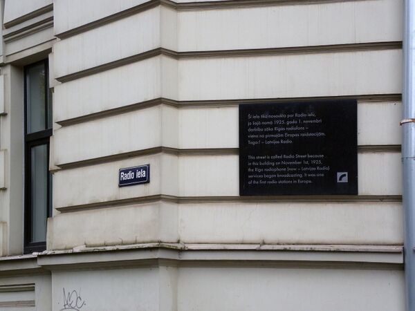После переноса представлений в восстановленное здание Интерим-театр был разобран, а на его месте началось строительство ныне существующих каменных зданий. В одном из них с 1925[5] (по другим сведениям, с 1932)[2] года разместился «Рижский радиофон» — первая государственная латвийская радиостанция, после чего пролегающая вдоль него безымянная улица получила своё нынешнее название[6]. В годы немецкой оккупации улица именовалась Rundfunkstrasse (немецкая калька с оригинального названия); других переименований не было[7].