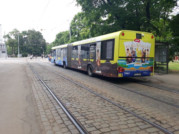 На улице Радио расположена остановка трамвая «Stacijas laukums»[9], а на берегу Городского канала имеется пристань для прогулочных катеров «Radio iela»[10].