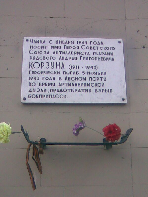 Улица получила своё название 16 января 1964 года[1] в честь героя Великой отечественной войны артиллериста Андрея Григорьевича Корзуна (1911—1943), погибшего в бою и похороненного неподалёку на Южном воинском кладбище в Кировском районе Санкт-Петербурга.