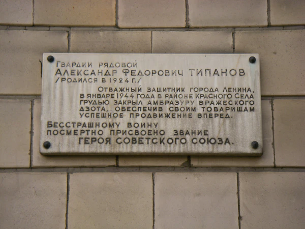 Названа в 1955 году в память о Герое Советского Союза А. Ф. Типанове, закрывшем 18 января 1944 года в окрестностях Красного Села своим телом амбразуру фашистского дота и погибшем в 19 лет. В 1964 году при присоединении нового участка получила современную протяжённость.