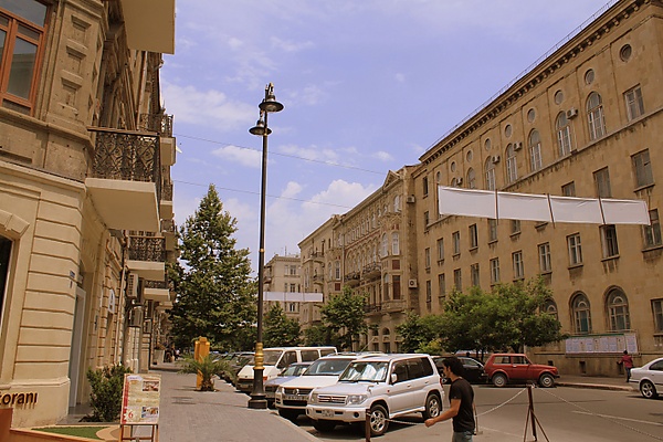В 1934 году в самом начале улицы были сданы в эксплуатацию два идентичных массивных здания сталинской архитектуры проекта Микаила Усейнова и Садыха Дадашева, в одном из которых разместился кинотеатр «Низами», а другое позже стало главным отделением информационного агентства «Азертадж». В 1950-х годах был ликвидирован находящийся на бывшей Ярмарочной площади, неподалёку от вокзала, Солдатский рынок, на месте которого был заложен Парк им. Самеда Вургуна и воздвигнут памятник поэту.[1]