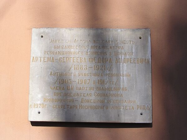 - Улица Артёма названа в честь партийного и революционного деятеля, активного участника установления советской власти на Украине Фёдора Андреевича Сергеева (Артёма). Артём был председателем Донецкого губисполкома, председателем Совета народных комиссаров Донецко-Криворожской советской республики.