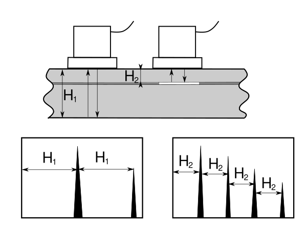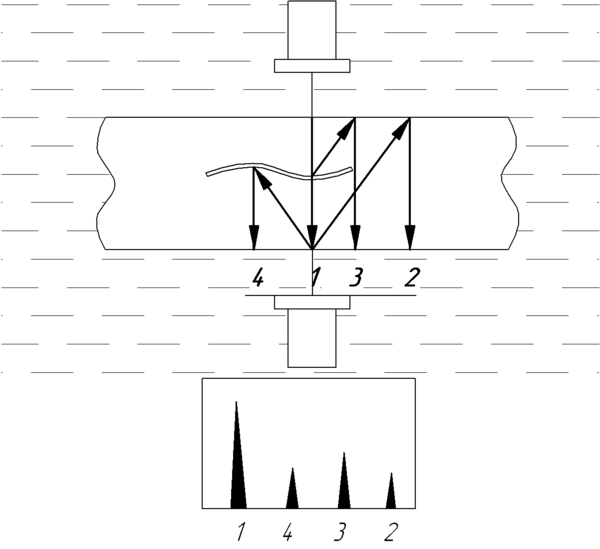 - Метод многократной тени аналогичен теневому, с тем исключением, что ультразвуковая волна несколько раз проходит через параллельные поверхности изделия.