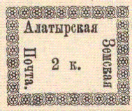 В 1867 году в Алатырском уезде Симбирской губернии была учреждена земская почта. Для местных почтовых нужд были выпущены земские почтовые марки номиналом в 1 и 2 копейки. Они имели прямоугольную рамку из знаков типографского набора и надпись «Алатырская земская почта». Однокопеечная марка сохранилась лишь в трёх экземплярах и является раритетом. В то же время распространено значительное число фальсификатов обеих марок[1].