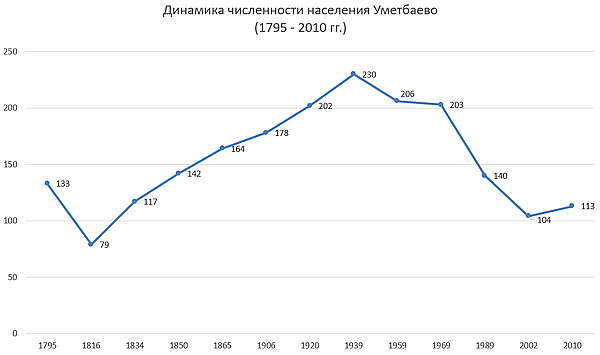 В дальнейшем обе эти деревни учитывались ревизиями как одна Уметбаево (Яхино). В 1920 г. д. Уметбаево имела и третье название — Калмак. Там жили вместе и башкиры, и русские (200 человек в 42 дворах).