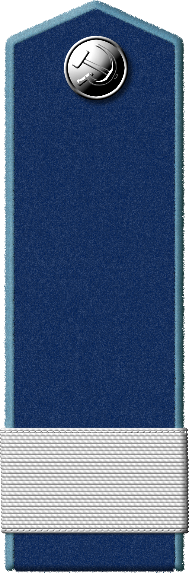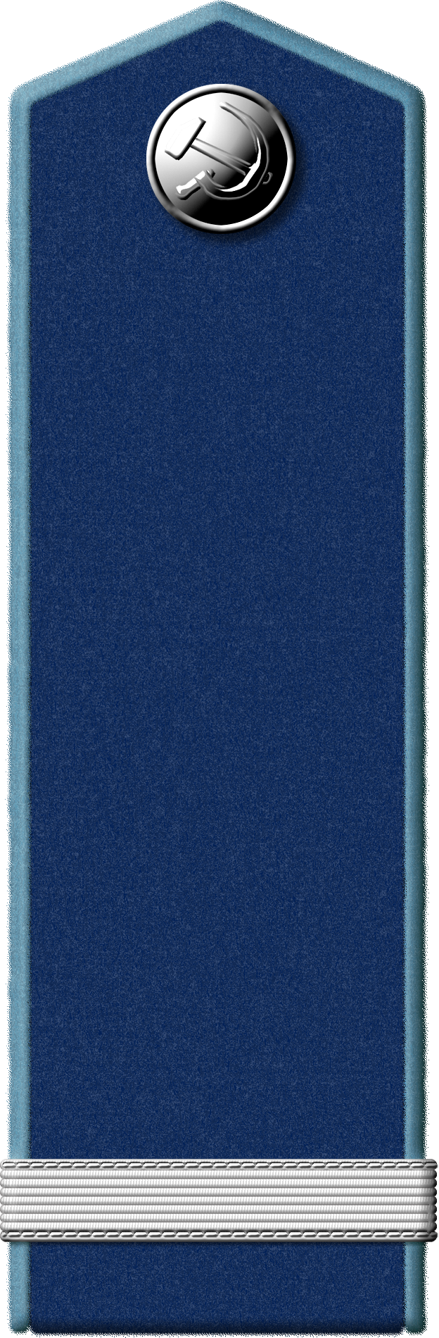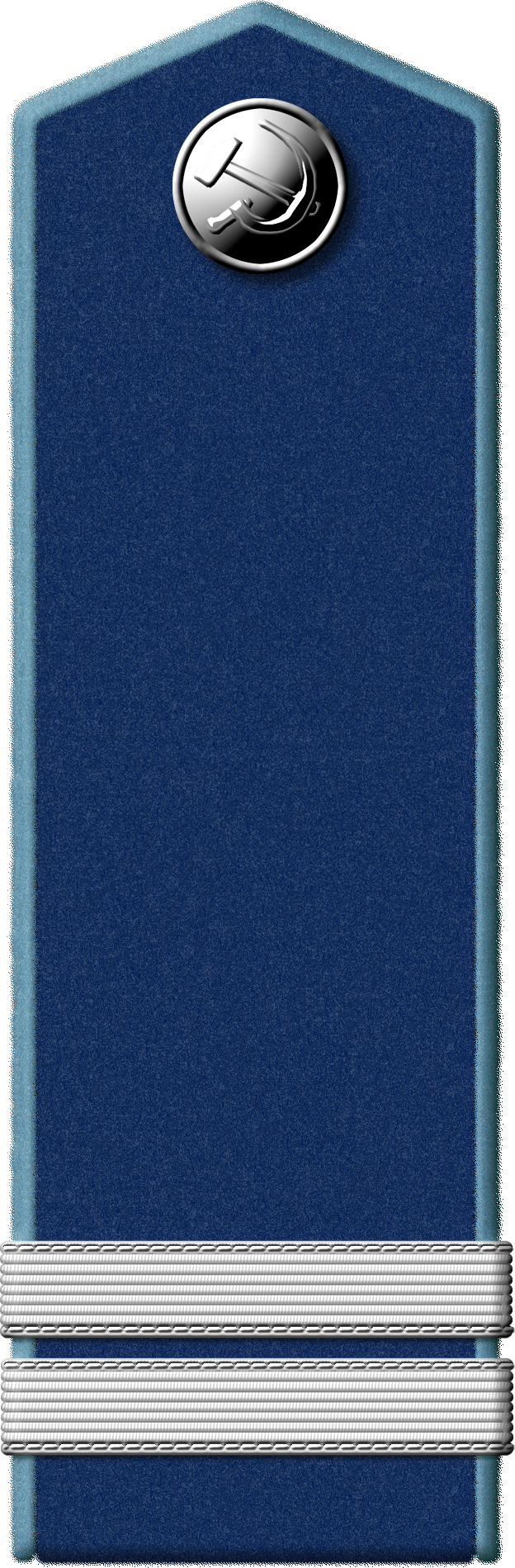 - Значок для головного убора — из эмалированного щита красного цвета длиной — 2 см, шириной — 1,5 см, окаймленного скошенным золотым ободком шириной 3 мм. На щите расположены золотые серп и молот. Щит расположен на венке из колосьев.