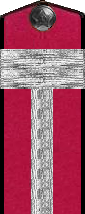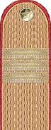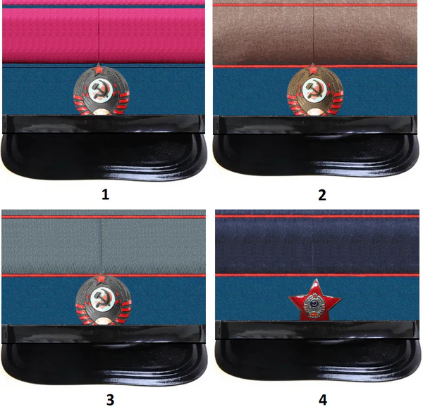 - зимний головной убор из приборного сукна крапового цвета — продолговатая шапка типа пилотки с прямым козырьком из черной кожи. Дно полуовальной формы, посредине вогнутой, образующей два ребра. По краям ребер и по швам кант из приборного сукна . Сзади накладной околыш из искусственного барашка серого цвета. Над козырьком черный подбородный ремешок, прикрепленный двумя форменными пуговицами малого размера.