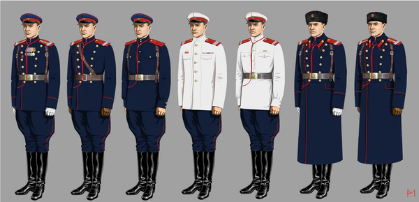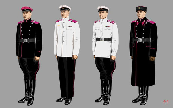- мундир зимний изготавливался из сукна цвета маренго по покрою аналогичный летнему мундиру.