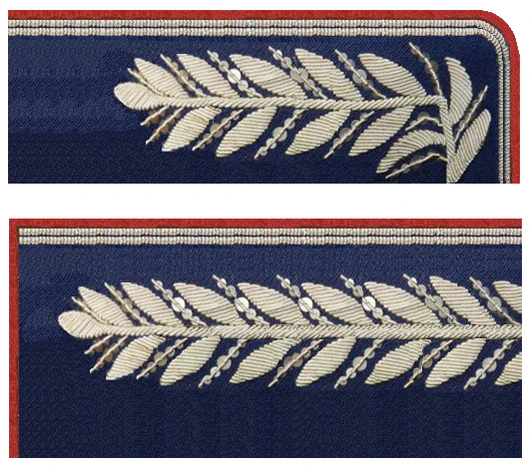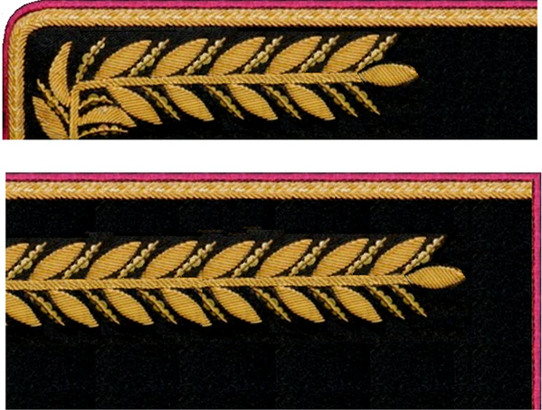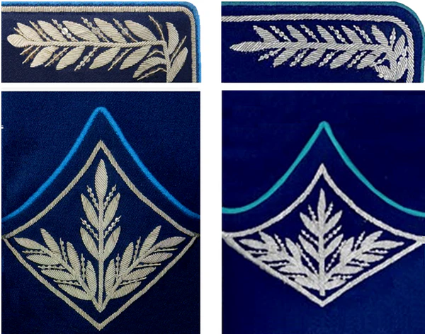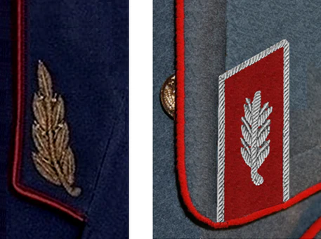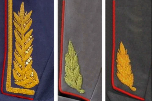 Для комсостава — все металлические части эмблем и знаков золотистого цвета, для милиционеров — серебряного.