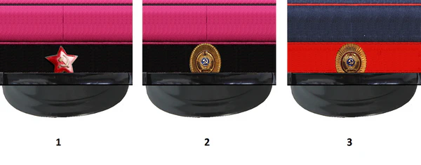 - летней фуражки с околышем из сукна крапового цвета. Тулья из сукна цвета маренго или черного для пешей и из сукна желтого цвета — для конной милиции. По тулье и двум краям околыша кант из приборного сукна. Над козырьком — подбородный ремешок. Летом на фуражку разрешалось надевать чехол из сурового белого полотна.