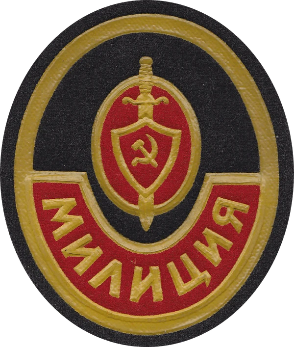 Приказом Милиции Республики № 12 от 15.12.1920 года были установлены новые отличительные знаки Рабоче-Крестьянской Милиции. На суконных шлемах армейского образца (буденовках) вместо звезды из сукна нашивался изготовленный из сукна крапового цвета щит, на котором крепился металлический значок на головной убор, установленный в 1918 г. Кроме отличий на головном уборе согласно этому приказу на левом рукаве шинели и френча выше обшлага, и гимнастёрки выше манжеты должен был нашиваться отличительный знак, который представлял собой всё тот же суконный щит крапового цвета, окаймлённый венцом из колосьев жёлтого цвета. На щите жёлтой краской должно было наноситься изображение серпа и молота, расположенных крест-накрест. Внизу у щита на венце из колосьев должна была располагаться лента в виде банта с надписью «РСФСР» белыми буквами.