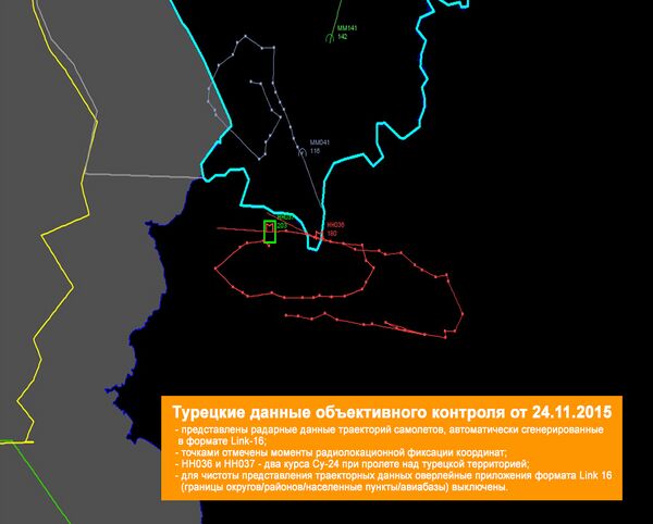 Министерство обороны предоставило запись полётов в зоне поражения Су-24М[49], согласно которой российский бомбардировщик не нарушал воздушное пространство Турции.