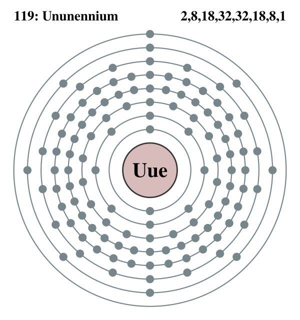 Элемент 119 после его синтеза будет первым элементом в восьмом периоде периодической таблицы химических элементов.