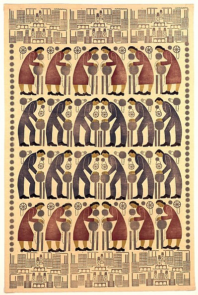 Настенное панно «Строительство дамбы», характерный пример американского «производственного стиля» 1930-х (У. Гроппер, 1939)