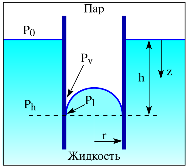 - где — давление пара при кривизне поверхности радиуса ;