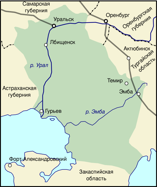 В 1868 году город стал административным центром созданной Уральской области и Уральского уезда, столицей Уральского казачьего войска, был частью Оренбургской губернии[12].