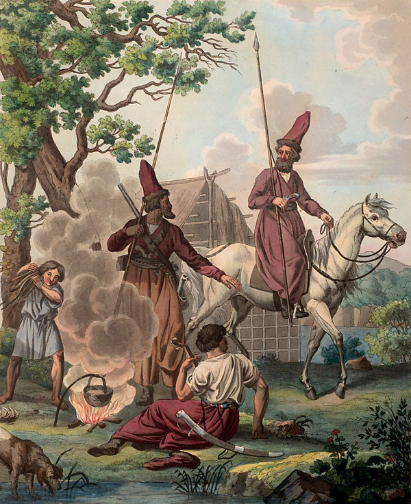 Казаки донские, терские, яицкие бьются огненным боем; а запорожские черкасы — и огненным, и лучным.