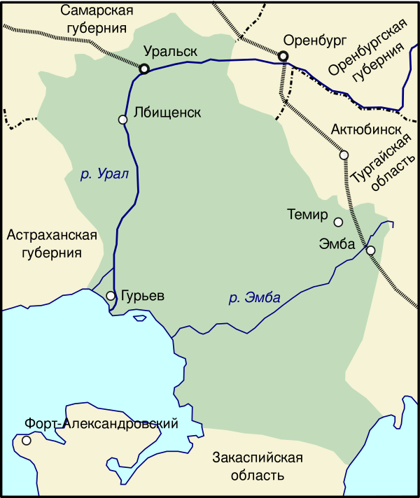 Остатки белой Уральской армии (около 9 тысяч человек и до 6 тысяч гражданских беженцев) во главе с генералом Толстовым в крайне тяжёлых условиях в январе—марте 1920 отступали вдоль восточного побережья Каспия на Юг, в Форт-Александровский (ныне Форт-Шевченко Казахстана).