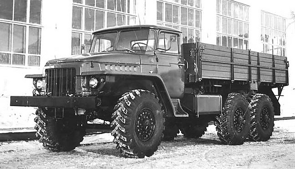 Создан на основе Урал-375. Основные отличия от предшественника — отсутствие привода на переднюю ось, отсутствие системы централизованного регулирования давления в шинах, цельнометаллическая кабина и неэкранированное электрооборудование. Кабина впоследствии была использована на автомобиле Урал-375Д.