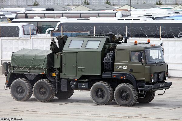- Ремонтно-эвакуационная машина колесная легкая РЭМ-КЛ, предназначенная для ремонта и эвакуации автомобильной техники многоцелевого назначения и вооружения полной массой до 16 т[29]. РЭМ-КЛ оборудована кузовом-фургоном (рабочий отсек, оснащённый отопителем и фильтровентиляционной установкой), краном-манипулятором ИМ-95 с максимальной грузоподъёмностью до 2,83 т, лебёдкой с гидроприводом (длина троса — 60 м) и грузовой платформой для запасных частей. Снаряжённая масса РЭМ-КЛ составляет 18,3 т.
