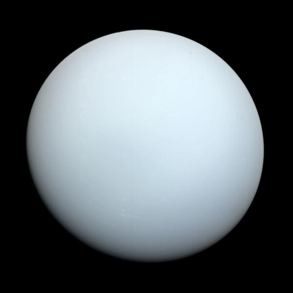 В 1986 году американский космический аппарат «Вояджер-2» передал на Землю снимки Урана с близкого расстояния. На них видна «невыразительная» в видимом спектре планета без облачных полос и атмосферных штормов, характерных для других планет-гигантов[12]. Однако в настоящее время наземными наблюдениями удалось различить признаки сезонных изменений и увеличения погодной активности на планете, вызванных приближением Урана к точке своего равноденствия.