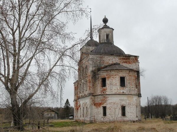 Каменная Воскресенская церковь была построена в 1824 году и освящена в 1829 году[28]. Двухэтажная с двумя приделами: в нижнем тёплом — во имя Чудотворца Николая Мирликийского, а в верхнем холодном — в честь Воскресенья Христова. Верхний холодный придел с колокольней, в одной связи с церковью, был построен в 1846 году и освящен по благословению Преосвященнейшего Евлампия, епископа Вологодского и Устюжского 8 июля 1850 года.