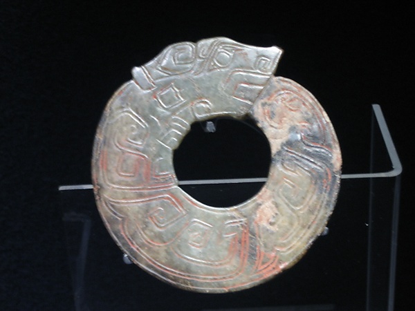 Р. Робертсон и А. Комбс отмечают, что в Древнем Китае уроборос назывался «Zhulong» и изображался в виде создания, совмещающего в себе свинью и дракона, кусающего себя за хвост. Многие учёные придерживаются взгляда, что со временем данный символ претерпел значительные изменения и трансформировался в традиционного «китайского дракона», символизирующего удачу[6]. Одни из первых упоминаний об уроборосе как символе датированы 4200 годом до н. э.. Первые находки фигурок свернувшихся в кольцо драконов относят к культуре Хуншань (4700—2900 до н. э.). Одна из них, в форме полного круга, находилась на груди покойника[25].