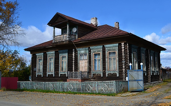 Одноэтажный на высоком подклёте сруб покрыт вальмовой кровлей с ложным мезонином. Усложнен двумя крыльцами и прирубленным объёмом туалета. Уличный юго-западный фасад расчленён перерубом и прорезан проёмами: каждая часть в три оси. Третий справа — проём входа с поднятой крылечной площадкой (в 2000-х годах перестроена в балкон). Окна украшены наличниками с прямоугольной лобовой доской, развитым карнизом и геометризованным трактовкой декора. Северо-восточный дворовый фасад асимметрично прорезан шестью окнами. Второй проём справа — входной, он выделен крыльцом с козырьком[2].