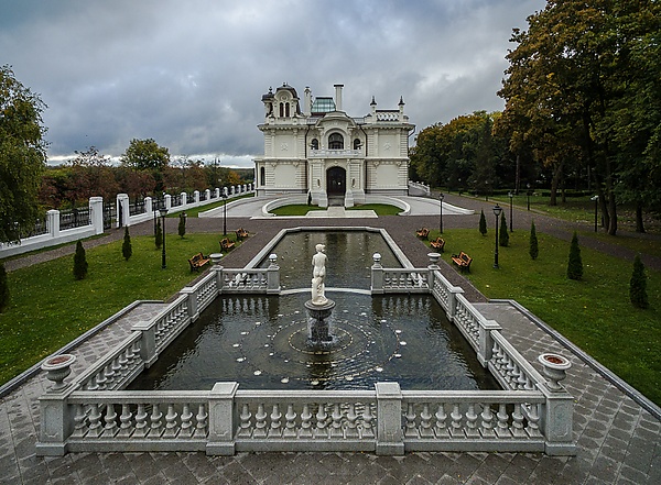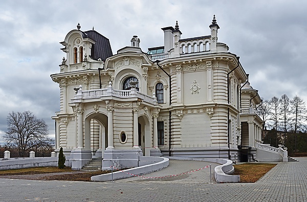 Дом выполнен в стиле загородного особняка и считается одним из лучших образцов эклектики в архитектуре того периода[11]. Каждая комната оформлена в уникальном стиле с использованием декоративных элементов, характерных для эпохи модерна. В состав усадьбы входит: