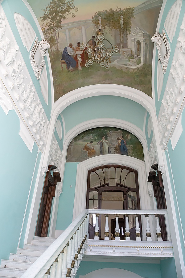 Этажи связывает парадная лестница из белого мрамора[7].