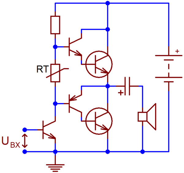 Для того, чтобы охваченный обратной связью усилитель был устойчивым, требовалось исключить из схемы как минимум один из двух трансформаторов[3]. Функции согласования импедансов и расщепления фаз управляющего сигнала, которые в классической схеме исполняли трансформаторы, следовало возложить на транзисторы[6]. Дополнительную сложность представлял ограниченный ассортимент тогдашних, исключительно германиевых транзисторов: в слаботочных каскадах конструкторы могли использовать транзисторы и pnp-, и npn-структуры (пока ещё не комплементарные), в мощных — только pnp-транзисторы[6]. Решение задачи — первая практически работоспособная схема бестрансформаторного транзисторного УМЗЧ — было найдено разработчиком компании RCA Хун-Чан Лином и опубликовано в сентябрьском номере журнала Electronics за 1956 год[6][1].