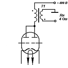 - трансформаторные — в основном такая схема согласования применяется в ламповых усилителях. Обусловлено это необходимостью согласования большого выходного сопротивления лампы с малым сопротивлением нагрузки, а также необходимостью гальванической развязки выходных ламп и нагрузки. Некоторые транзисторные усилители (например, трансляционные усилители, обслуживающие сеть абонентских громкоговорителей (см. Проводное вещание), двухтактные усилители многих радиоприёмников на германиевых транзисторах, некоторые Hi-End аудиоусилители) также имеют трансформаторное согласование с нагрузкой.