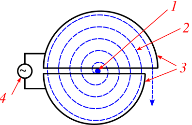 Он же — ускоритель с переменной кратностью. Резонансный циклический ускоритель с постоянным как у циклотрона ведущим магнитным полем и частотой ускоряющего напряжения. Идея микротрона состоит в том, чтобы сделать приращение времени оборота частицы, получающееся за счёт ускорения на каждом обороте, кратным периоду колебаний ускоряющего напряжения.