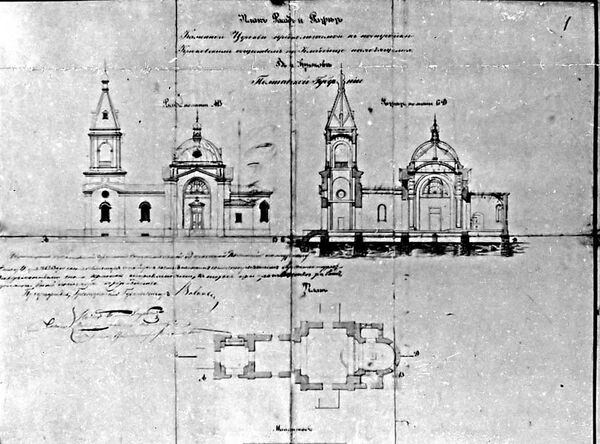 В XIX веке Кременчуг активно развивался, вместе с этим росла потребность в расширении Крюковского кладбища. По просьбе местного общества, городской архитектор Александр Несвицкий (отец известного врача и государственного деятеля Несвицкого Александра Александровича) составляет проект кладбищенской каменной одноглавной церкви, предназначавшейся для отпевания умерших и выполнения обрядов, связанных с погребением. Церковь была заложена на Екатеринославской улице в 1883 году[3]. По завершении строительства в 1887 году была освящена архиепископом Полтавским и Переяславским Иоанном как храм Успения Божией Матери. Рядом с церковью в 1897 году была построена церковно-приходская школа.