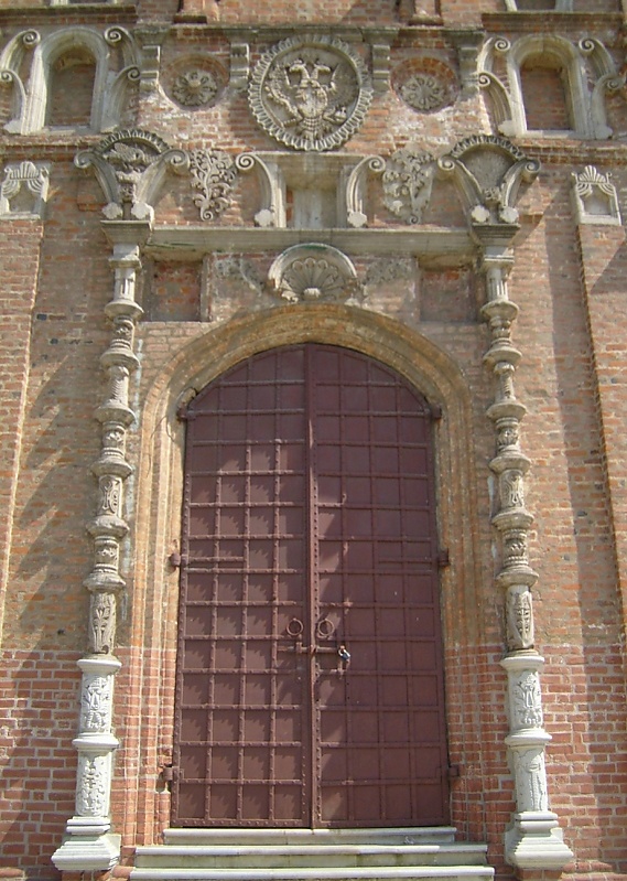 Для хорошего освещения большого внутреннего пространства окна выполнены в два ряда, что придаёт внешнему облику храма характер двухэтажного здания. Вертикальные декоративные полосы объединяют расположенные друг над другом окна первого и второго света в один архитектурный мотив. Декоративное убранство стен отличается разнообразием примененных форм и материалов: белокаменные резные детали (капители, раковины, розетки), элементы из фасонного кирпича, лепные украшения (растительный орнамент и другие). Три входа в собор обрамляют богато украшенные порталы. Над главным западным входом располагается резной белокаменный российский герб — двуглавый орёл. Первоначально пол в храме был выстлан чугунными плитами, впоследствии замененными на каменные.