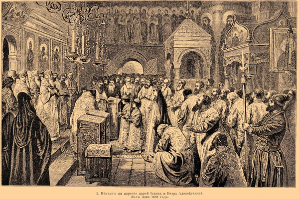 Впервые венчание на престол в Успенском соборе состоялось в 1498 году. На церемонии Иван III передал бармы и Шапку Мономаха своему внуку Дмитрию. В 1547-м при венчании Иван IV принял титулы царя и самодержца, а в число его регалий включили наперсный крест, скипетр и цепь[94]. В здании также проходил Земский собор 1613 года, на котором царём был избран Михаил Фёдорович. Пётр I в 1721 году ввёл в соборе обряд коронаций императоров: царский венец был заменён короной, бармы — мантией[95]. Последняя коронация состоялась 14 мая 1896 года. Для подготовки обряда наняли 2500 человек. Для священнослужителей были изготовлены златотканые парчовые облачения[96][4].